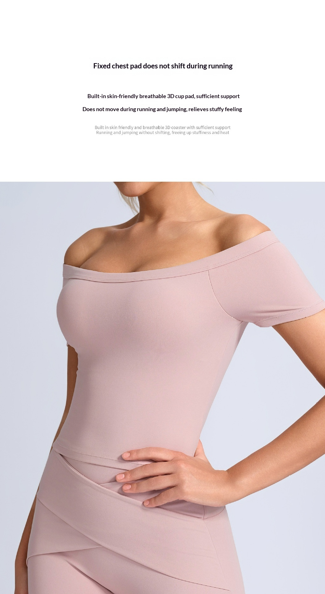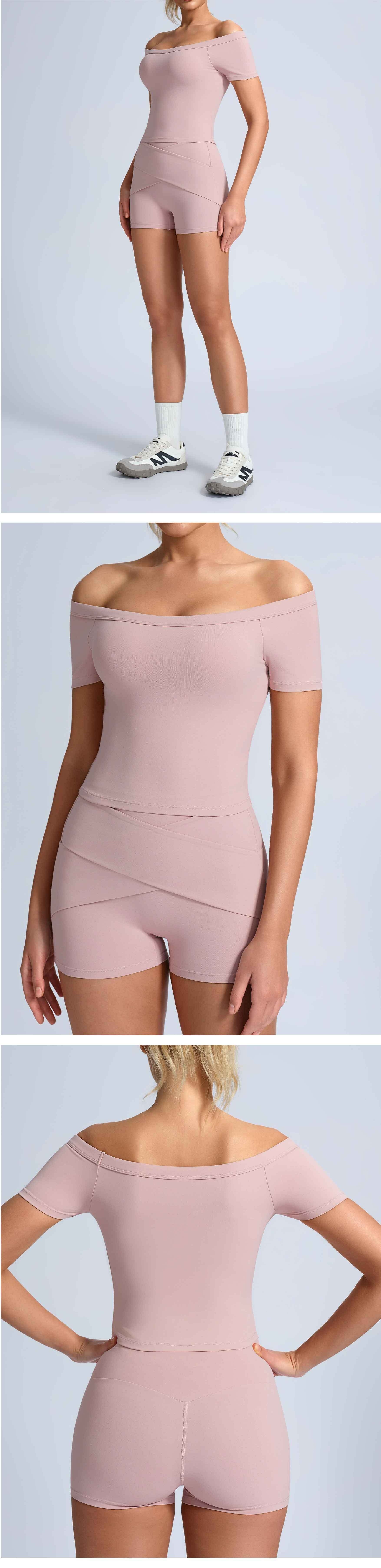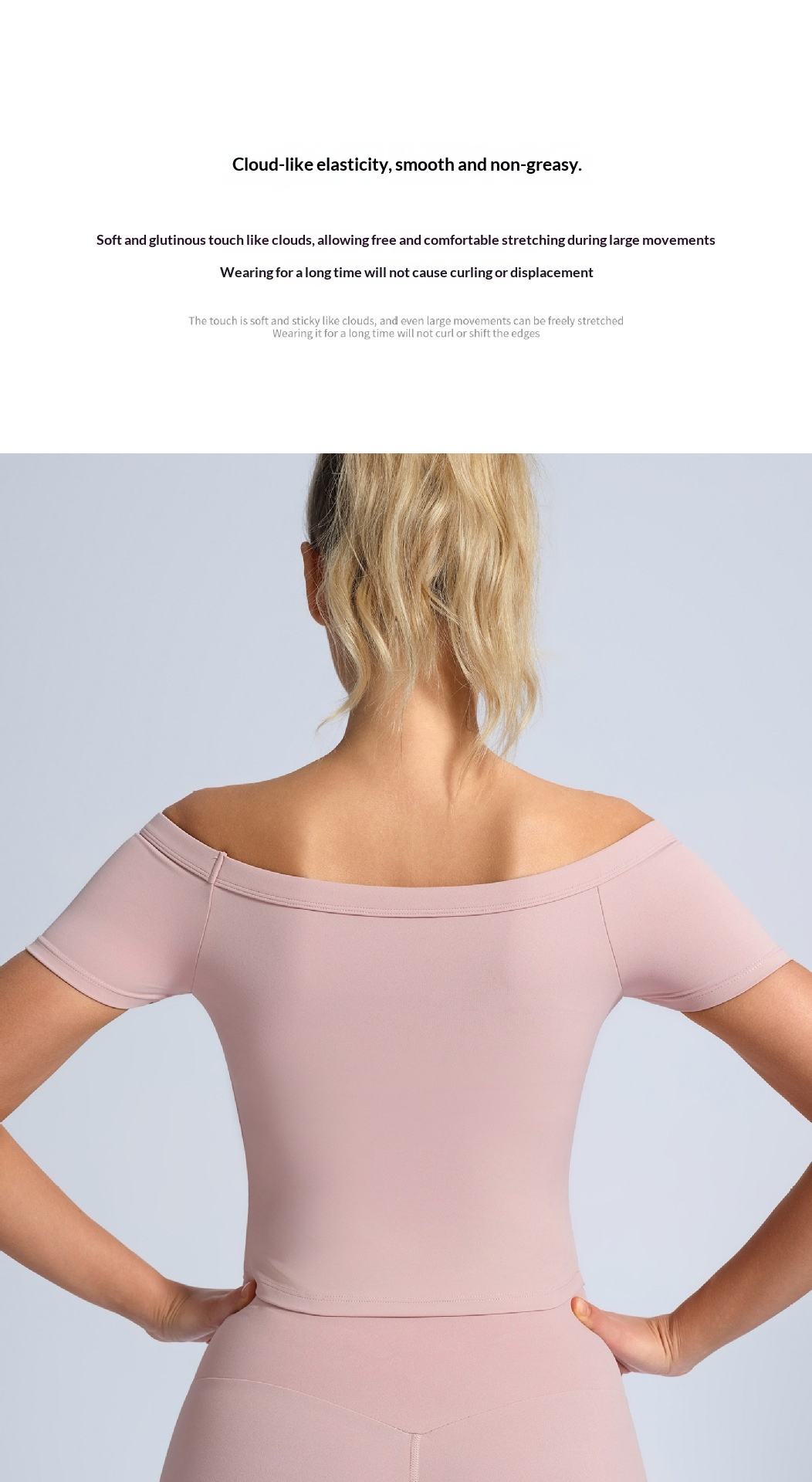 Brushed Off-shoulder Tight-fitting Short Sleeves