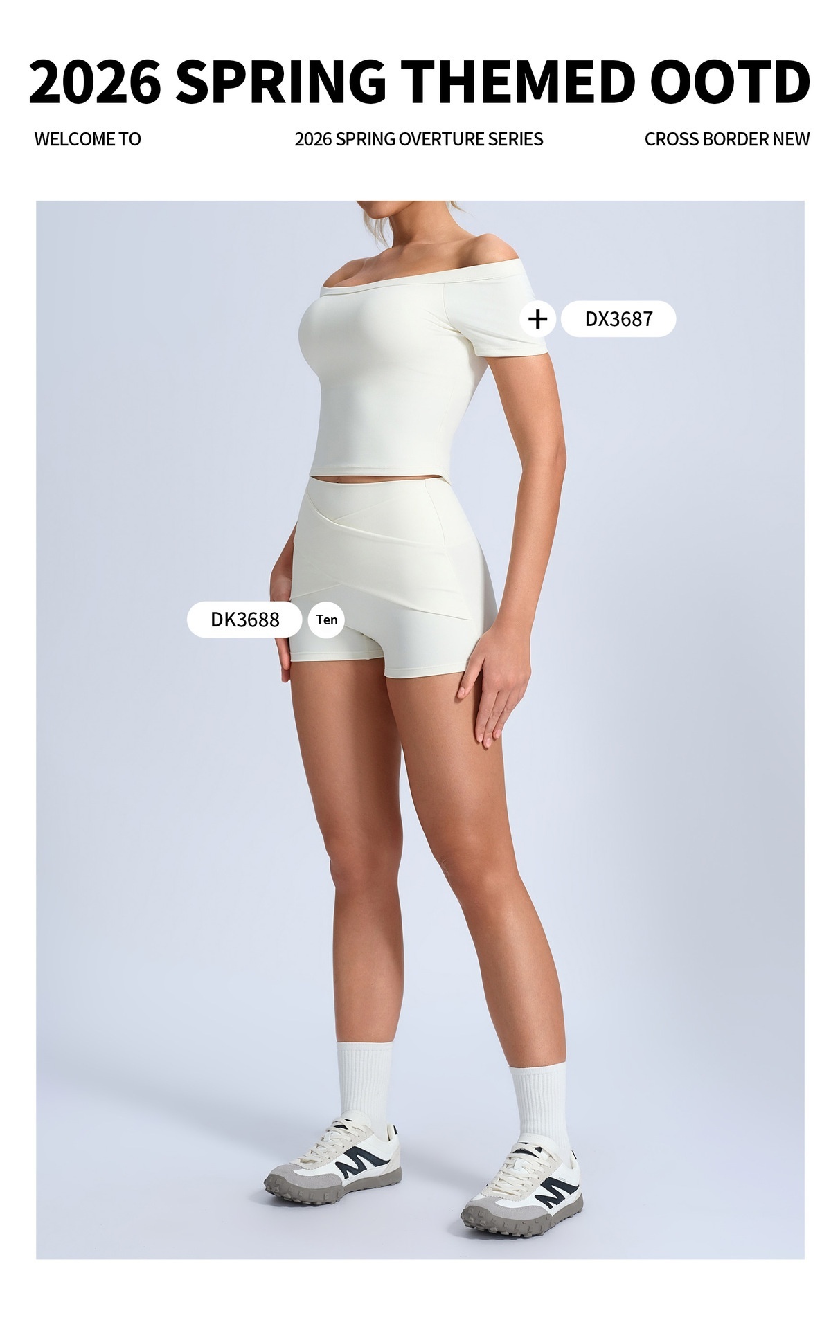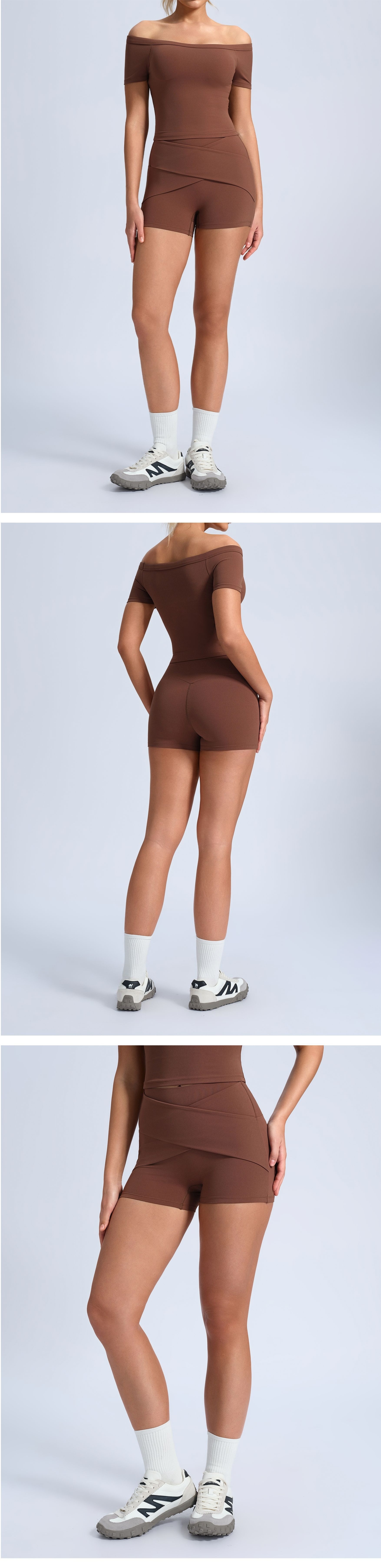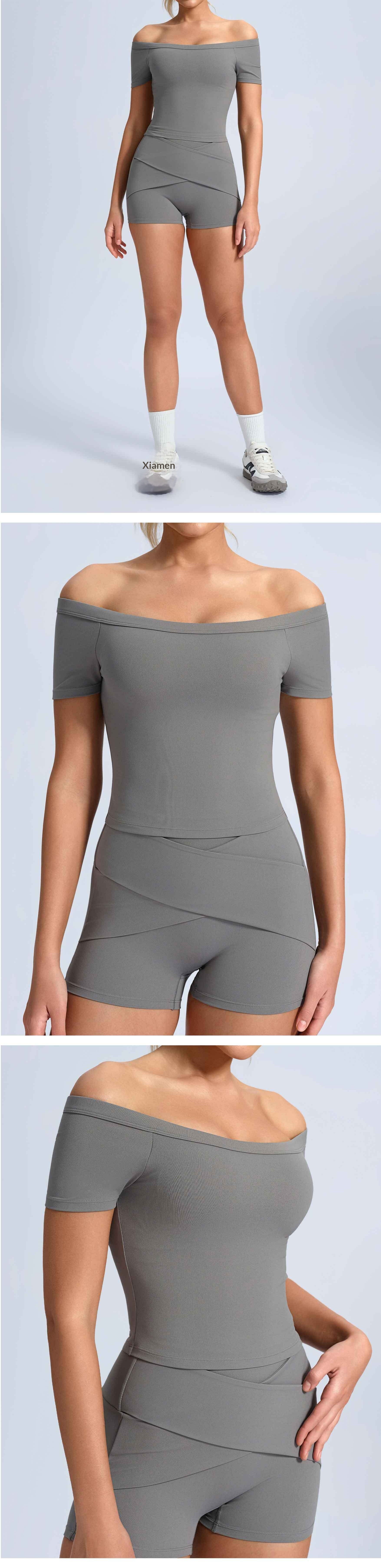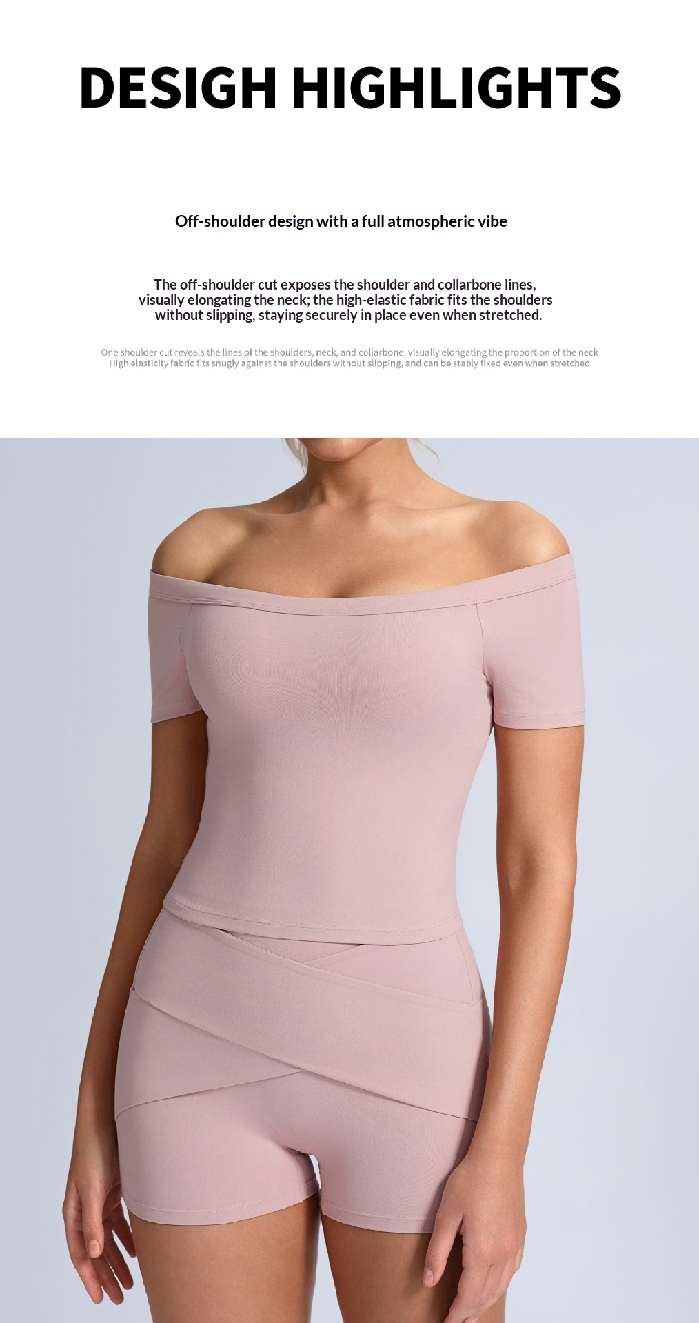 Brushed Off-shoulder Tight-fitting Short Sleeves